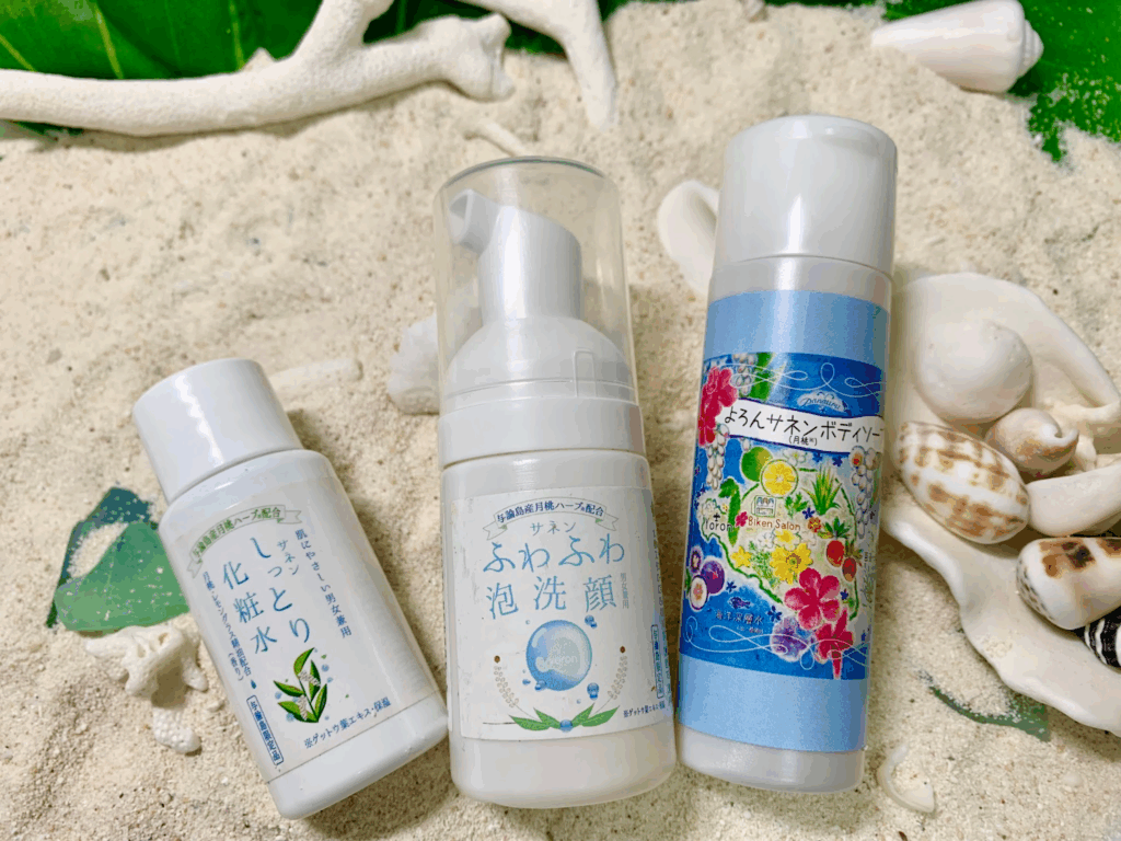 与論島の自然素材にこだわったスキンケア3点セット。爽やかなハーブの香りが、心地よいスキンケアタイムを演出します。ゲットウ葉エキスやレモングラスエキスが、お肌に潤いを与え、乾燥を防ぎます。旅行や出張にも便利なコンパクトサイズ。