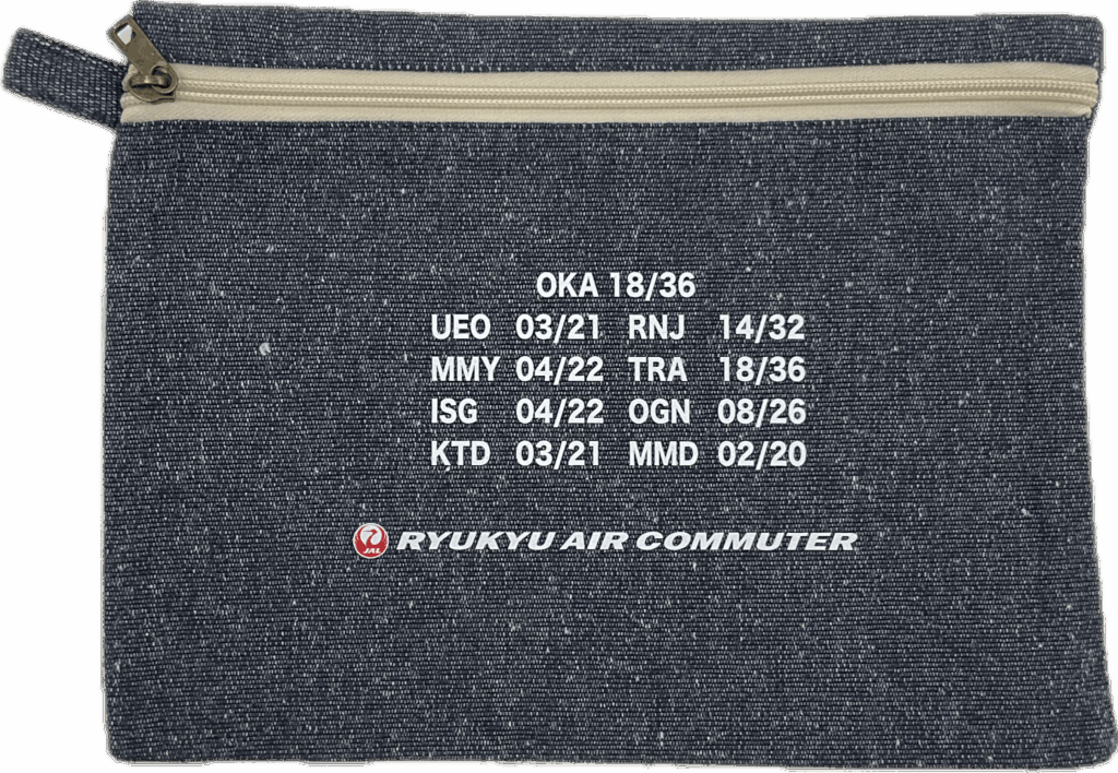 RAC就航地のRUNWAY Numberをデザインしたオリジナルポーチです。大きめサイズのポーチで男女問わず活用いただけます。